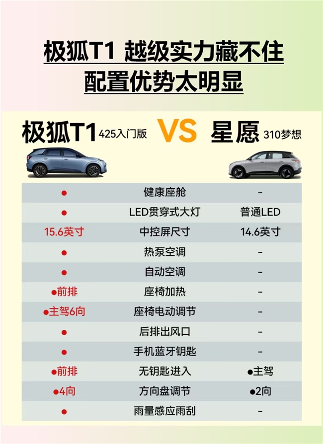 电池安全是纯电车的核心,极狐T1的表现堪称硬核。它搭载的极光电池达到 PPB 级安全标准,缺陷率仅为十亿分之一,行业常规标准是 PPM 级(百万分之一),这意味着极狐T1的电池安全标准比行业严格 1000 倍。不仅如此,这款电池还全面超越 2025 版电池安全新国标,托底、火烧、弯折等测试标准比新国标更严苛,密封性测试更是达到新国标的 96 倍,常规测试内容最高超过新国标 39 倍,还提前 “超纲” 实现 “无热扩散”。极狐在发布会上更是做出 “烧一赔一” 的郑重承诺,后续质保政策也将陆续公布,这份安全感让用户完全安心。吉利星愿的电池虽能满足日常通勤需求,但在这般高标准的安全认证和额外测试上,暂时没有同等配置,对于看重长期安全的用户,极狐T1的电池表现更具吸引力。